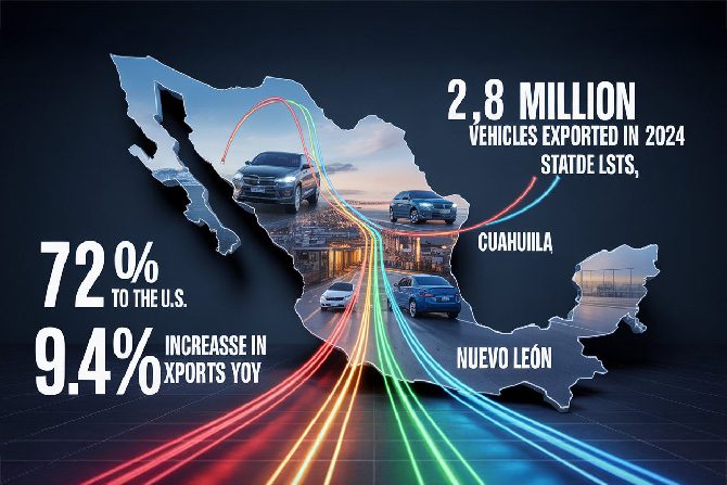 • 2.8 million vehicles exported from Mexico in 2024.